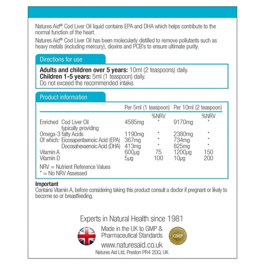 Natures Aid Cod Liver Oil Liquid with Vitamin A & D – 500ml | Buy in Ireland
